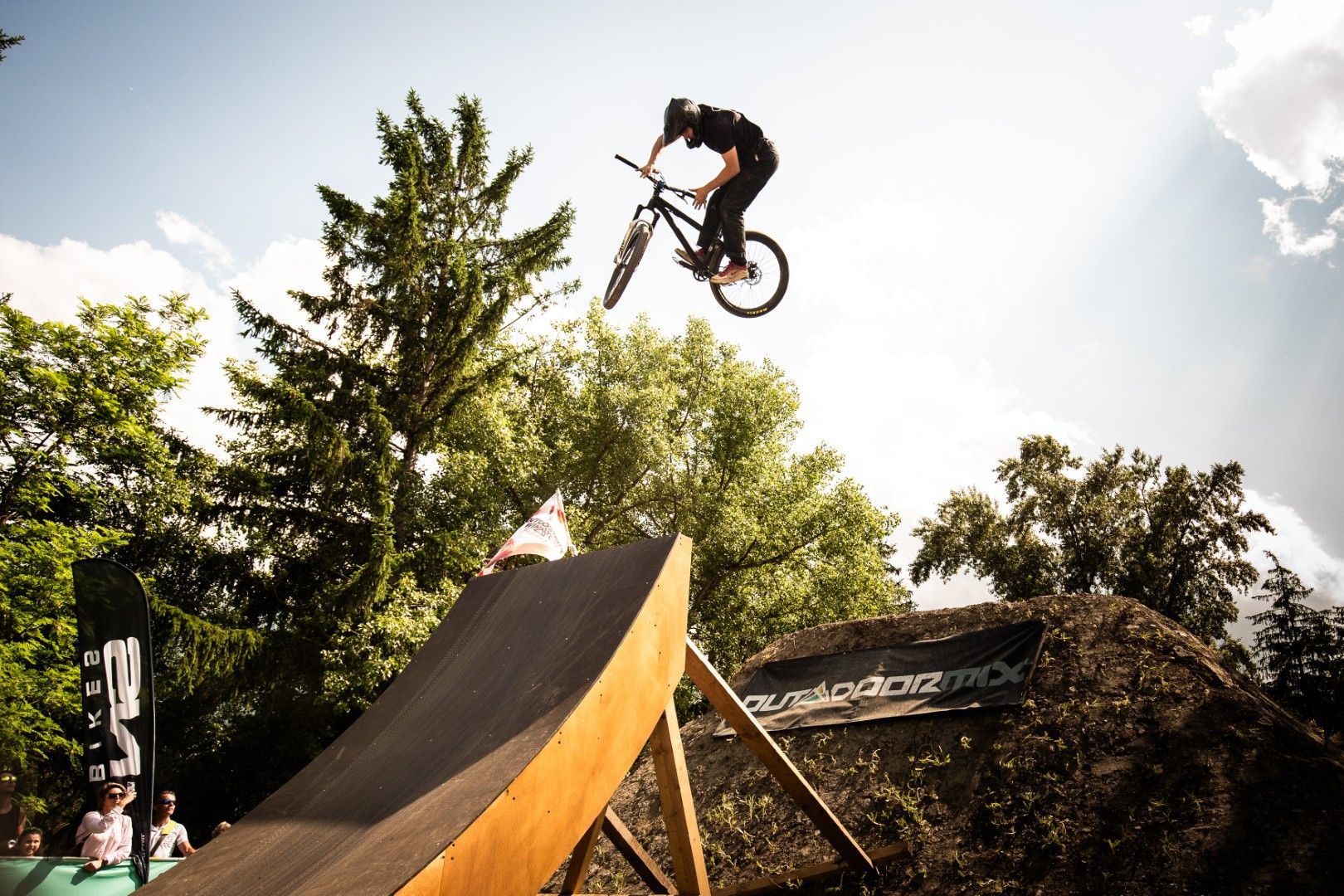 Nico Terrier, top 30 mountain biker in the world, Jérémy Berthier, internationally renowned shaper, and Maxime Chauvet, master builder of the Outdoormix Festival lines, are back to design the line this year. Get ready for some spectacular runs on a line designed by the best!